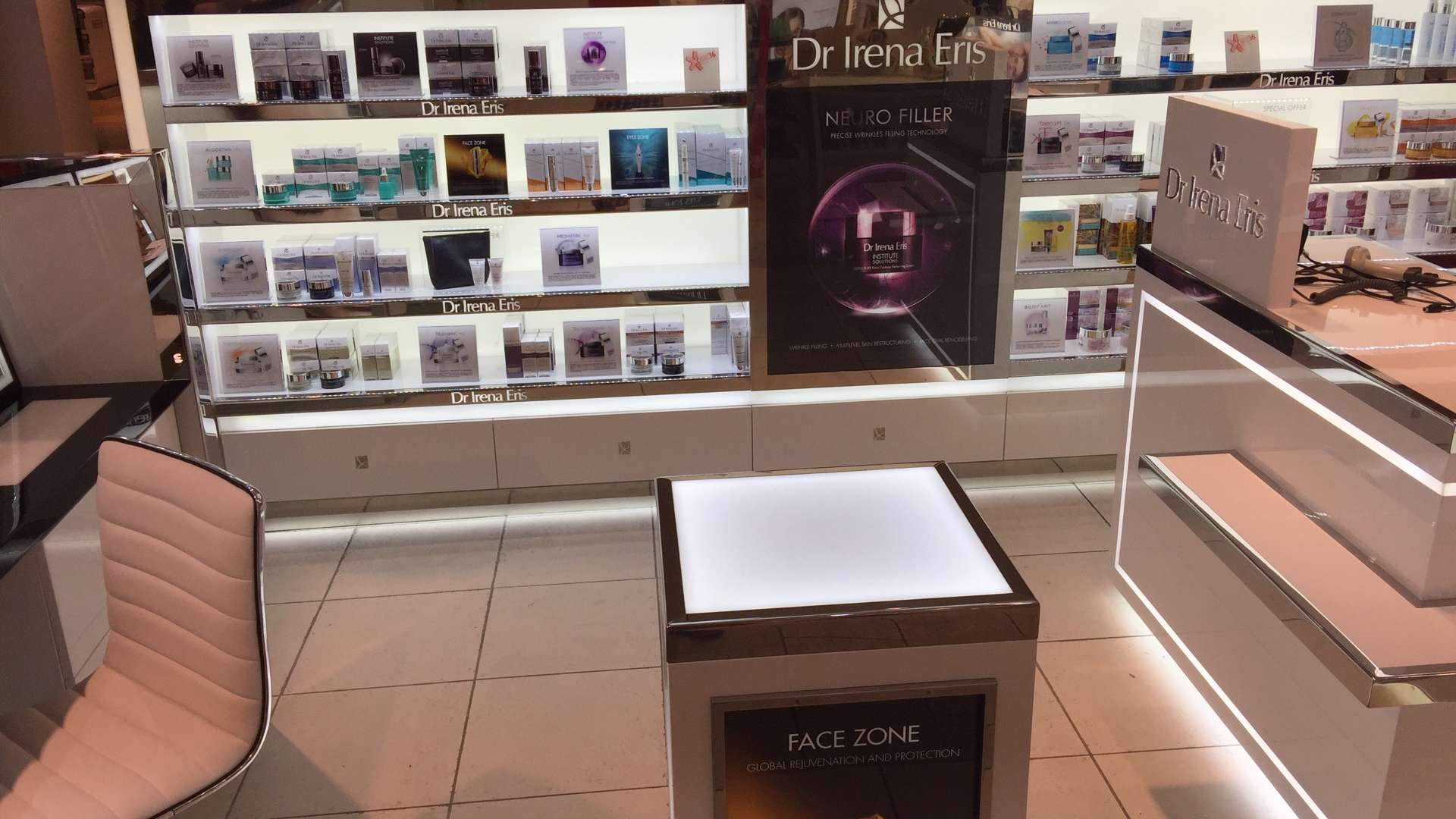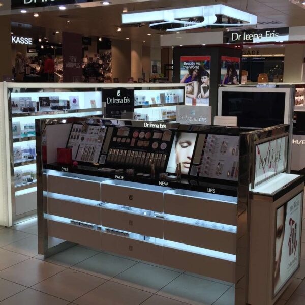 Cały proces produkcyjny zamknął się w czasie 2 miesięcy. W tym czasie opracowany został produkcyjnie każdy element stoiska od strony materiałowej i wykończeniowej. Mebel stał się pierwszym prototypowym modelem marki DR IRENA ERIS, który został wdrożony za granią na rynku duńskim.