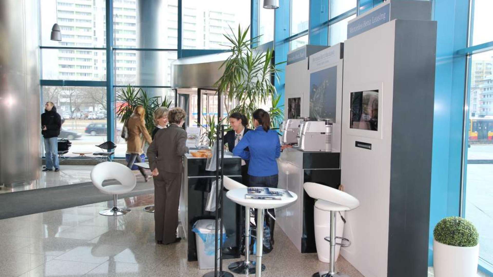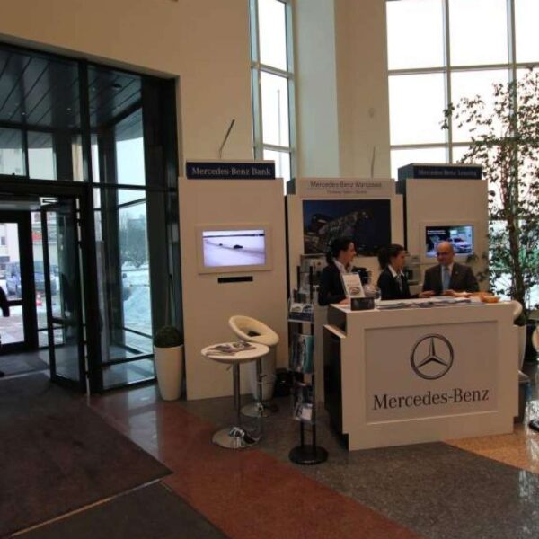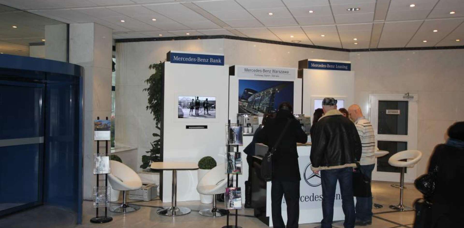 W ramach kampanii wykorzystane zostało specjalnie zaprojektowane multimedialne stoisko, w którym to odwiedzający mogli obejrzeć zwiastuny video wchodzących na rynek samochodów marki Mercedes – Benz. Ekspozycja pozwalała Pracownikom zapoznać się z prezentowaną ofertą, delektując się jednocześnie smakiem aromatycznej kawy.