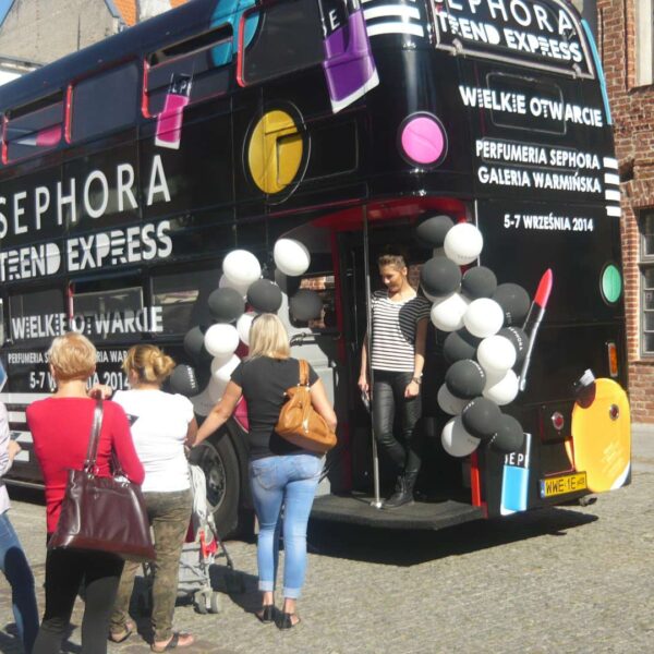 Na pokładzie autobusu dostępne były przeróżne atrakcje jak darmowy manicure i makijaż realizowany przez stylistki Sephora według najnowszych trendów, muzyka na żywo grana przed dj’a, hostessy które wręczały materiały reklamowe i wręczały próbki perfum. Autobus został zmodyfikowany pod akcję – przerobiony został sufit, stoliki, wbudowane stanowiska dla dj’a oraz stacje makijażowe. Dodatkowo pojawiły się boardy reklamowe i monitor LCD z promocyjnymi materiałami video. Double Decker zainstalowany miał także dodatkowy zewnętrzny system audio, dzięki któremu akcja nagłaśniana była przez konferansjera, wykorzystane zostały także jingle reklamowe