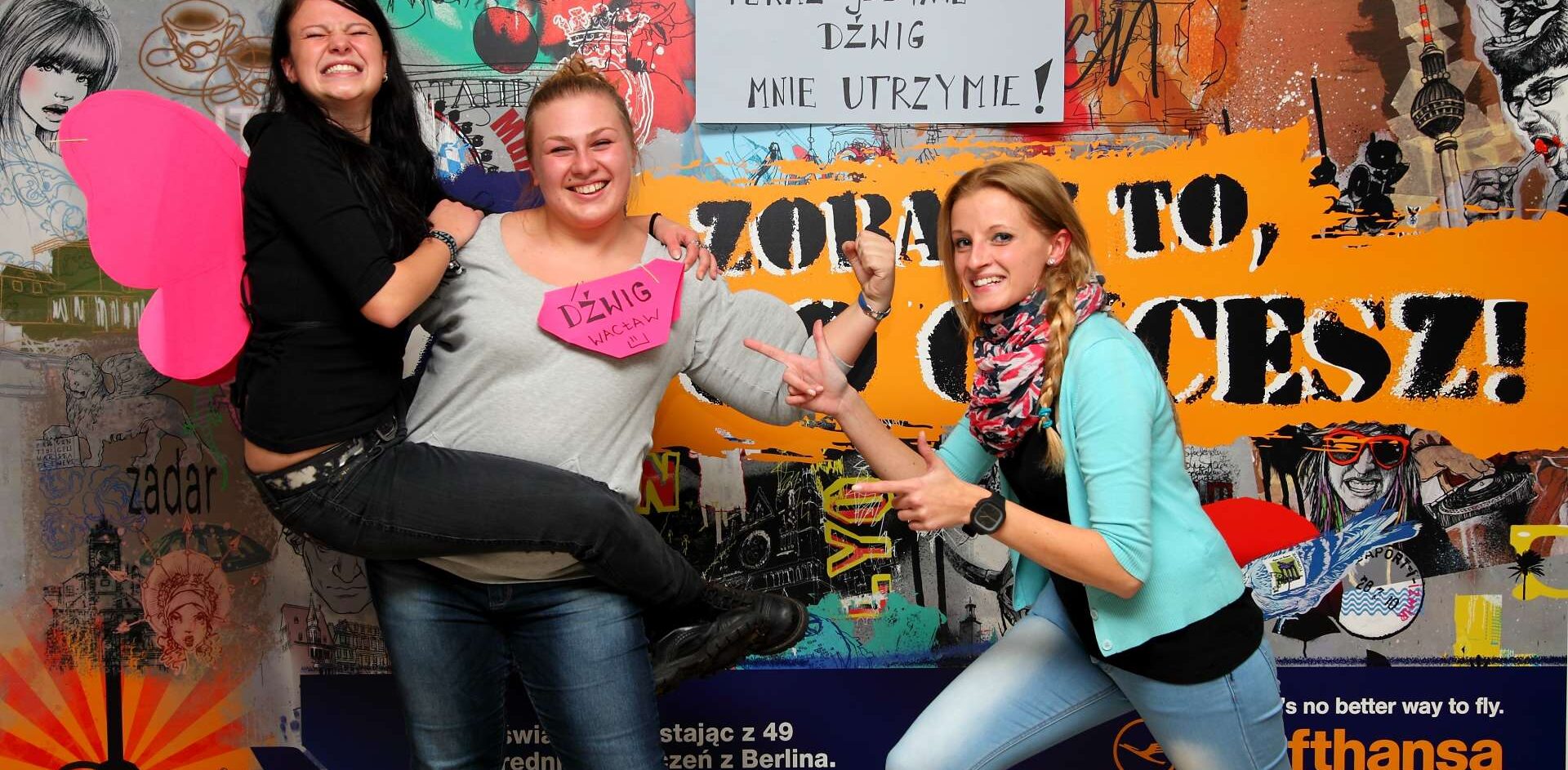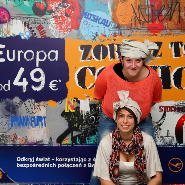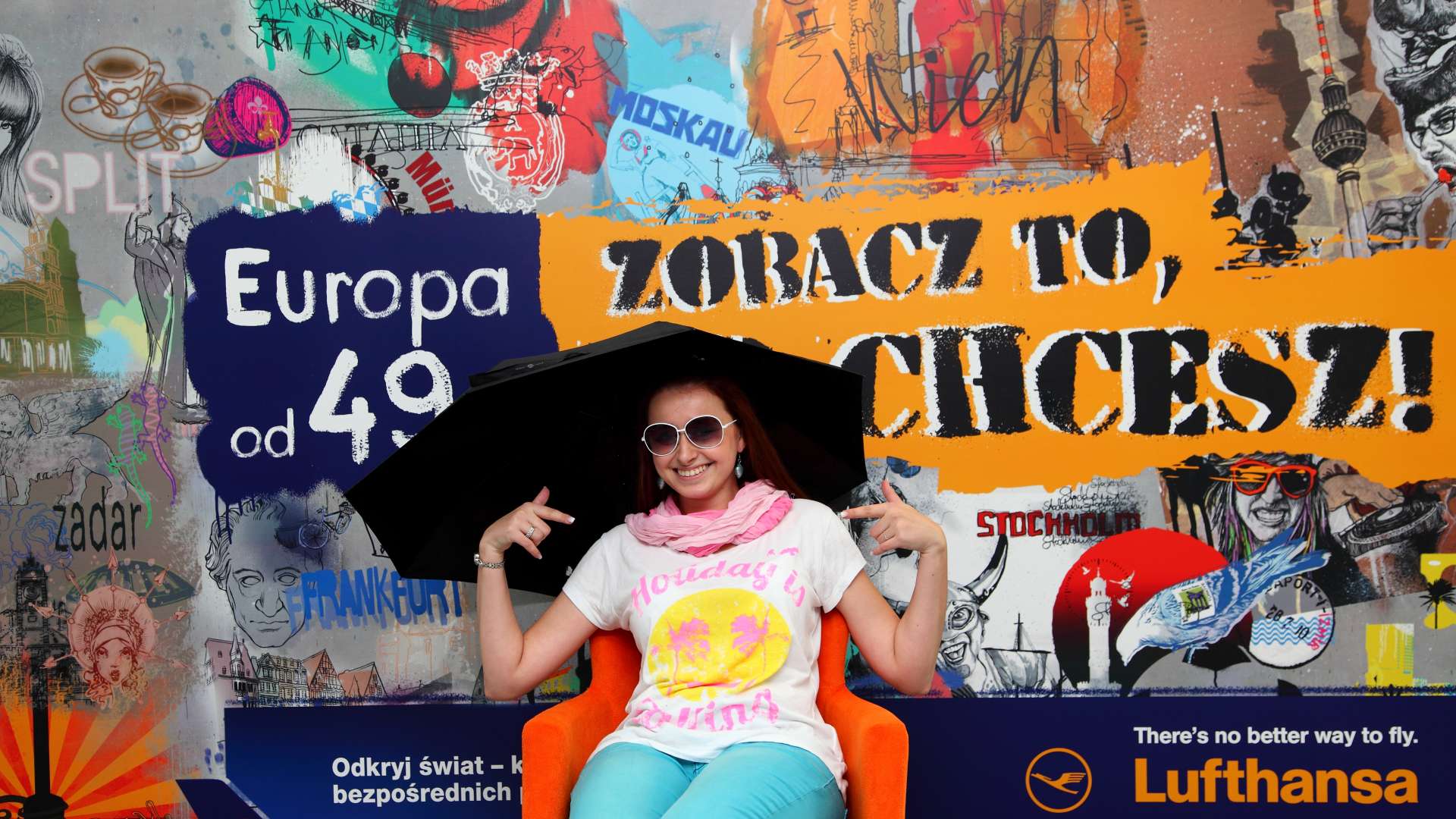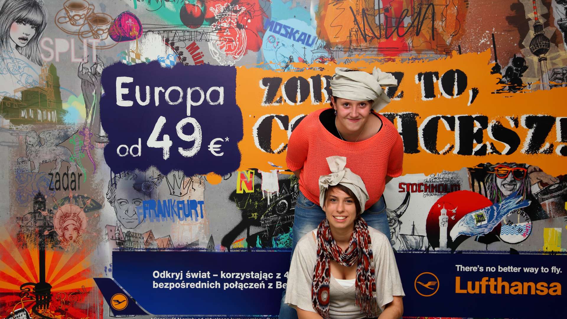 Na 10 uczelniach wyższych przygotowaliśmy aktywność konkursową dla studentów w formie interaktywnej pocztówki (2 x 3 metry). Kreacja pocztówki nawiązywała do klimatu graffiti przedstawiającego wybrane widoki i miejsca miast, do których możemy polecieć z Lufthansa’ą z Berlina. Aby wejść udział w akcji i konkursie w którym do wygrania były bilety lotnicze, wystarczyła inwencja twórcza studentów. Zadaniem konkursowym było wygenerowanie jak najlepszego zdjęcia – liczył się pomysł jak i sama egzekucja. Każdy kto wziął udział w konkursie otrzymywał także mini-gift w formie pocztówki drukowanej na miejscu akcji z swoją „pracą konkursową”.