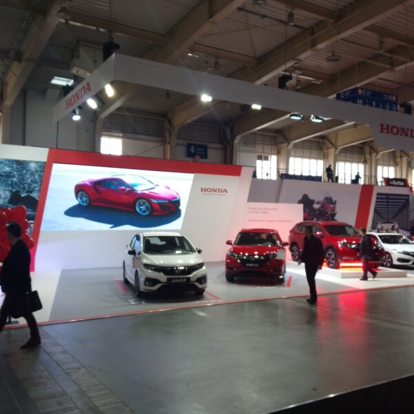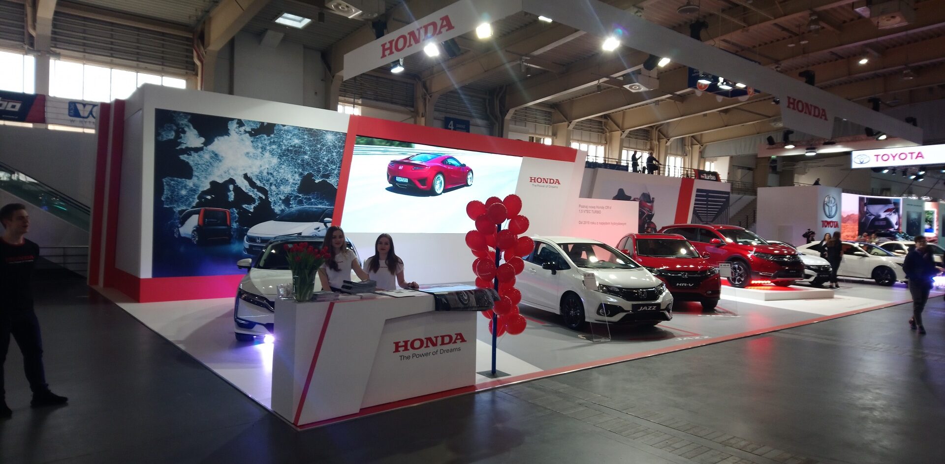 Strefę spójną z wartościami marki i jej duchem SPORTY AND ADVANCE. Kreacji towarzyszyły duże monumentalne ściany o wysokości 4,5m z dużymi wydrukami i diodą 3,9mm. Strefa została podwyższona i wyłożona podłogą PCW, w różnych kolorach. Strefa marki została podzielona na specjalne strefy – samochody przyszłości, sporty, motocykle i samochody powszechne. Wyróżnione zostały poszczególne modele jak Honda CR-V czy Honda NSX, wybrane modele zostały także podświetlone i użyte zostały dymiarki.