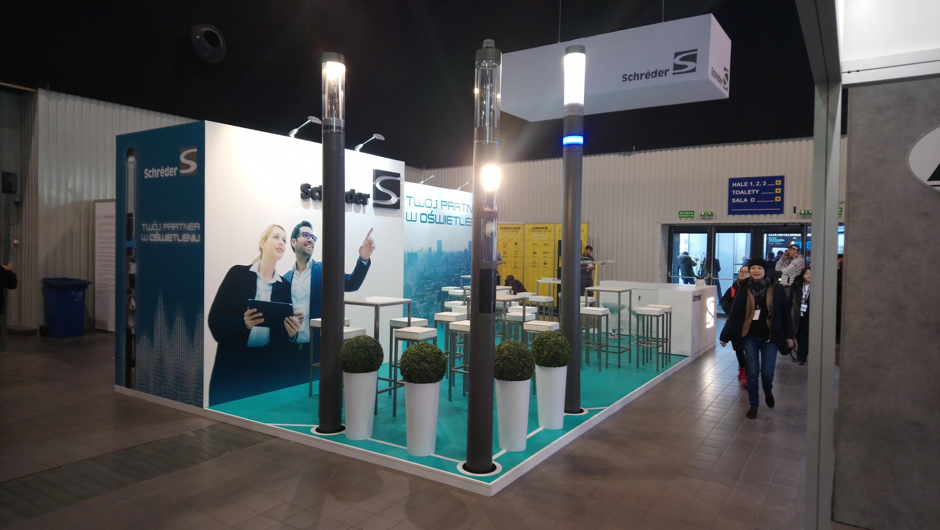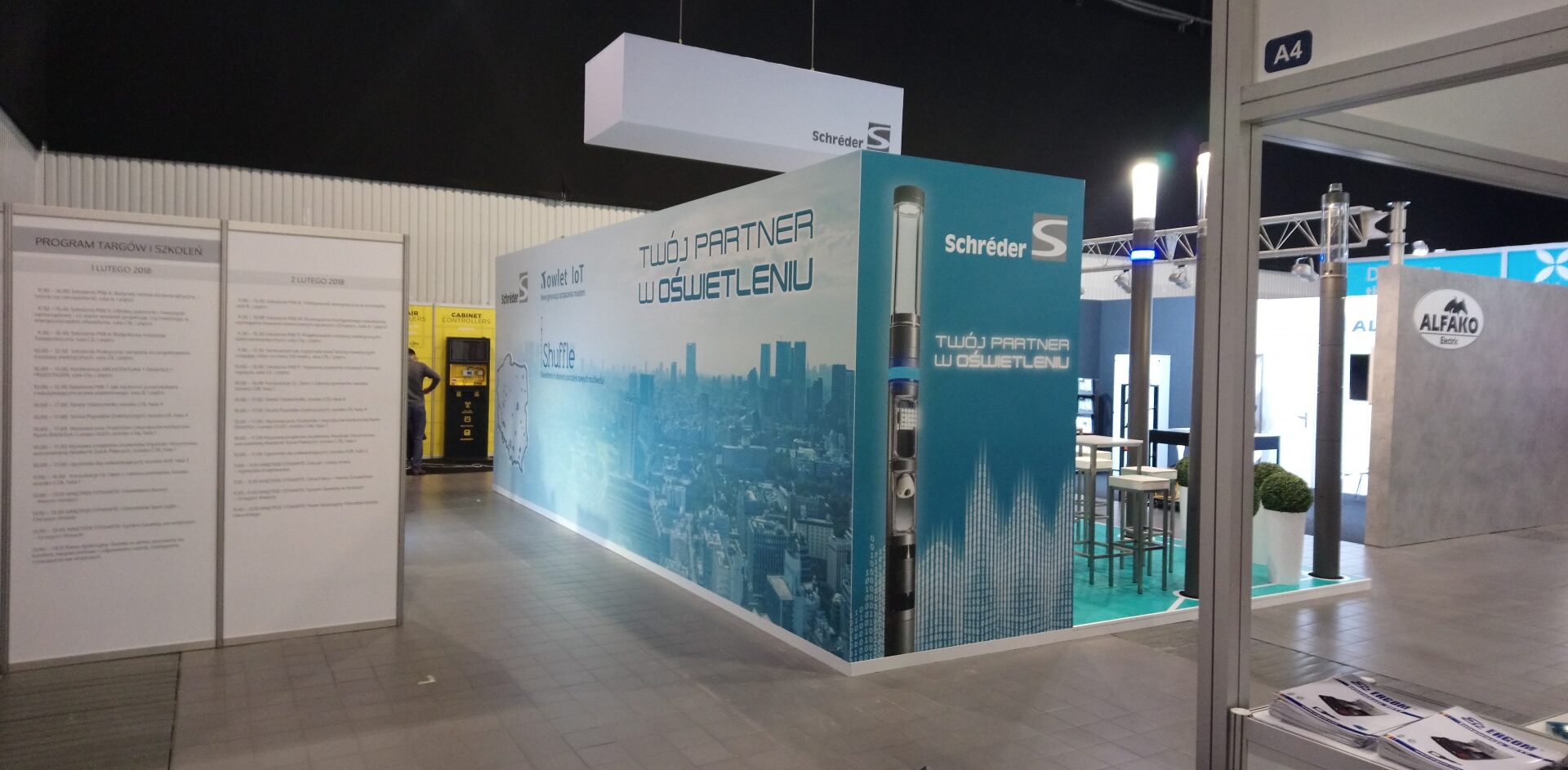 Przygotowaliśmy stoisko o powierzchni 5 x 8 m, zabudowa mdf wraz z wydrukami na pcv. Nad stoiskiem podwieszony został kaseton z logo.